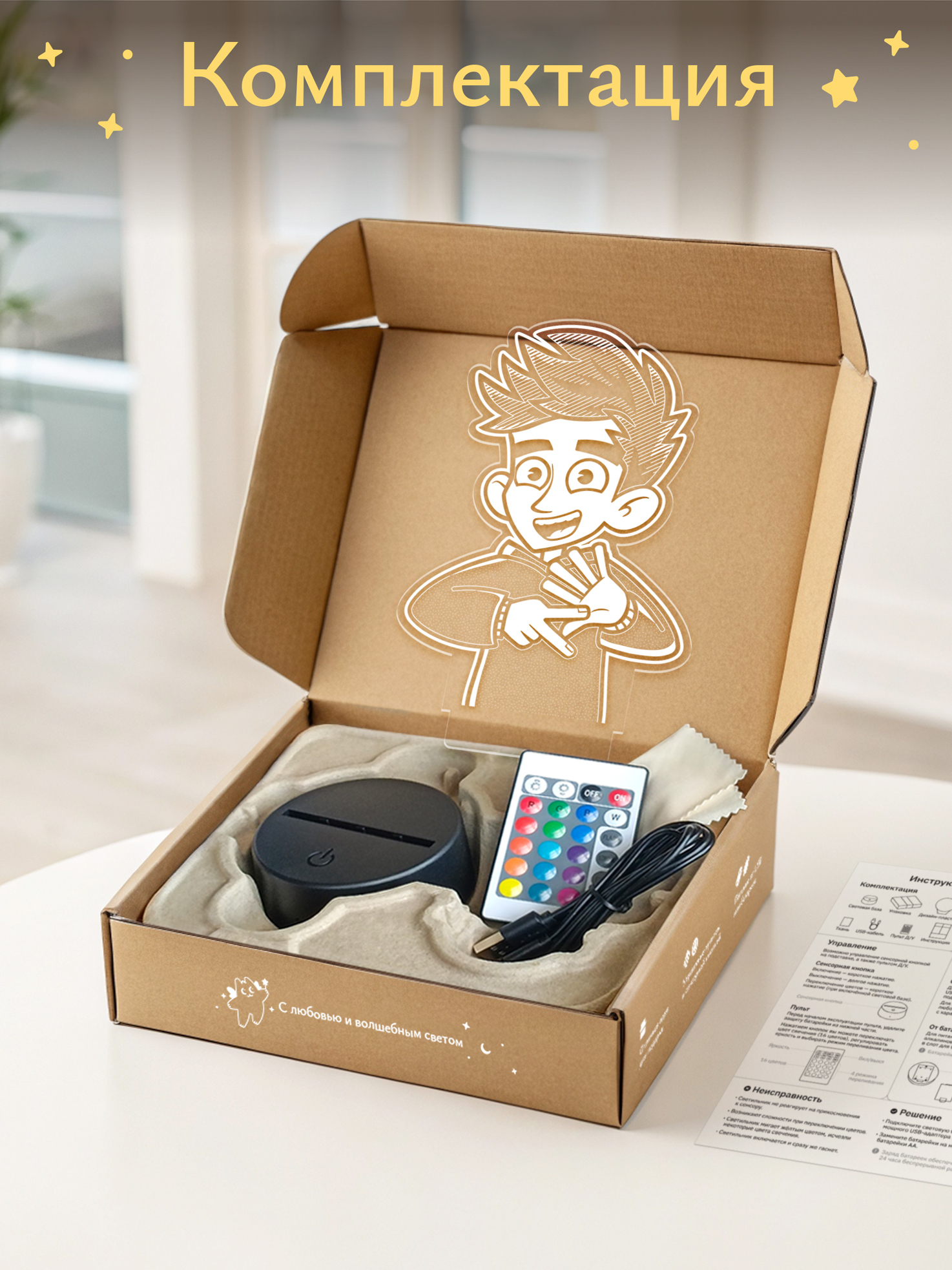 Встречайте очаровательный ночник "Влад А4" - идеальный подарок для поклонников Влада А4 и любителей оригинальных интерьерных решений! Этот милый ночник станет настоящим украшением детской комнаты, наполняя ее мягким, разноцветным светом и создавая уютную атмосферу. Представьте, как ваш ребенок с удовольствием засыпает под его теплым светом, а днем он украшает комнату, добавляя ей индивидуальности. Ночник "Влад А4" - это не просто источник света, а настоящий сувенир, который порадует любого ребенка. Он станет отличным подарком на день рождения, 8 марта, Новый год или любой другой праздник. Благодаря USB-питанию и пульту ДУ его удобно использовать и регулировать яркость. Сделайте интерьер комнаты вашего ребенка еще более стильным и оригинальным с ночником "Влад А4"!