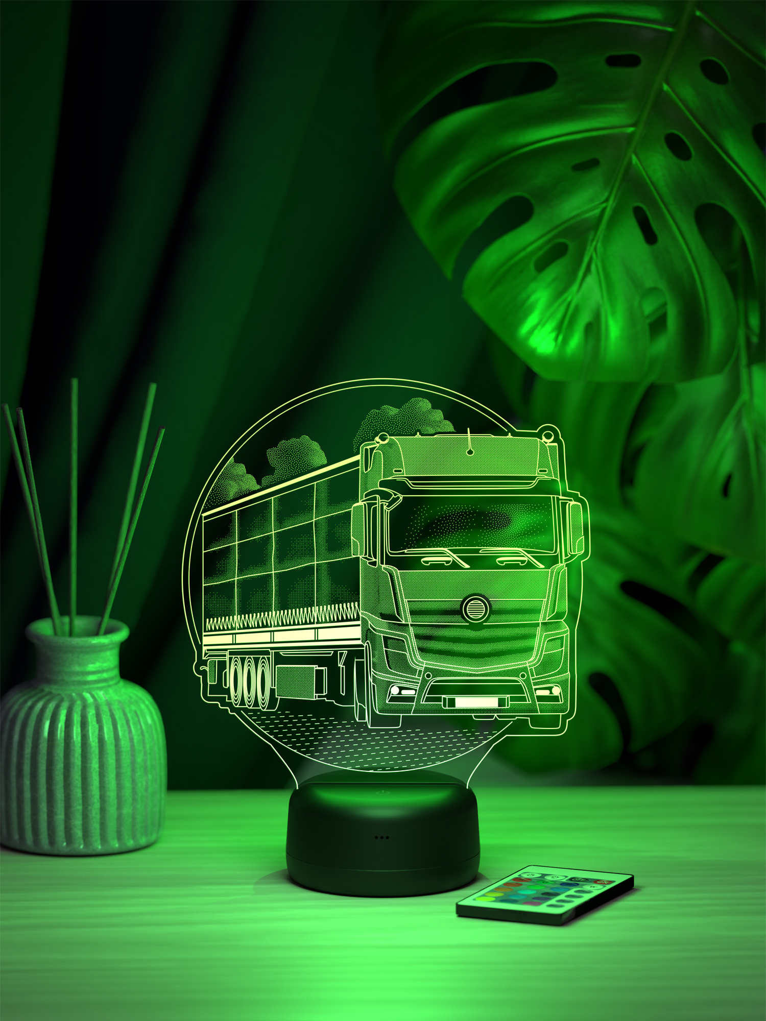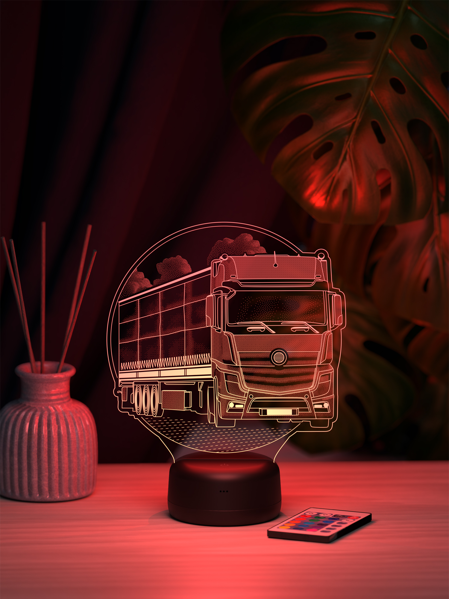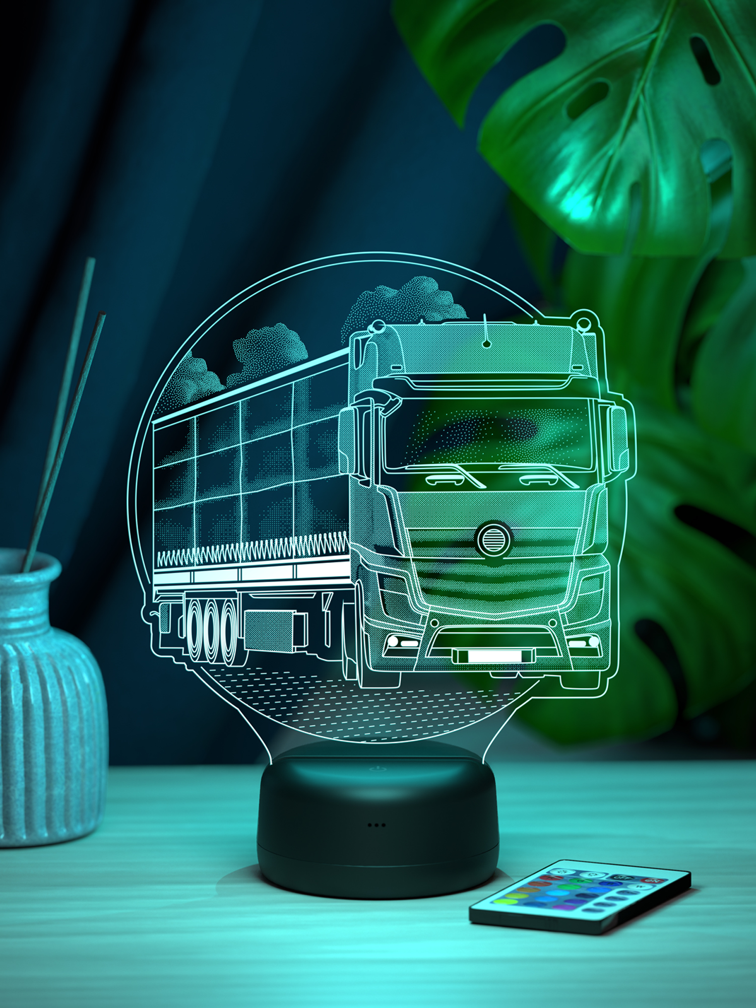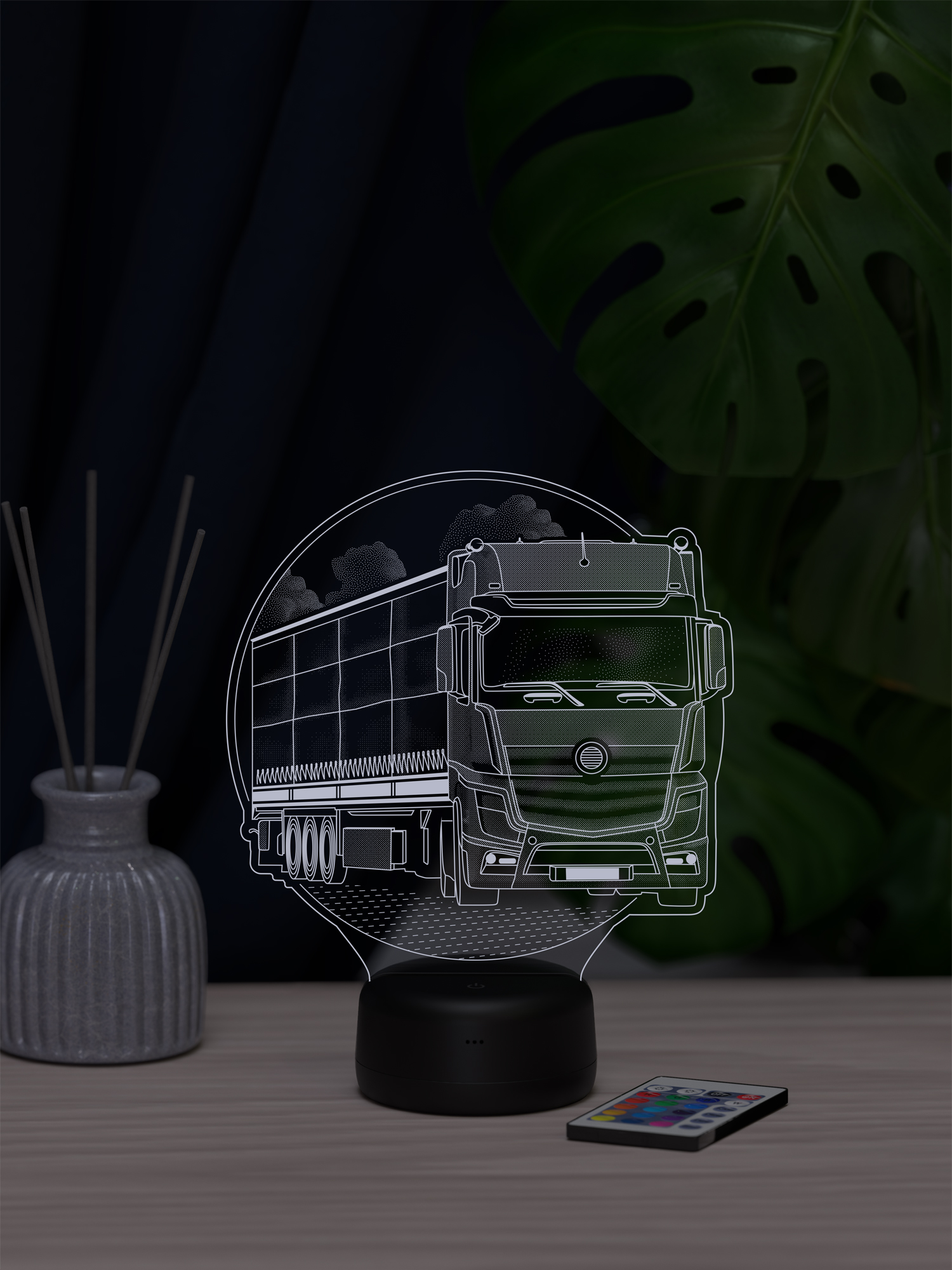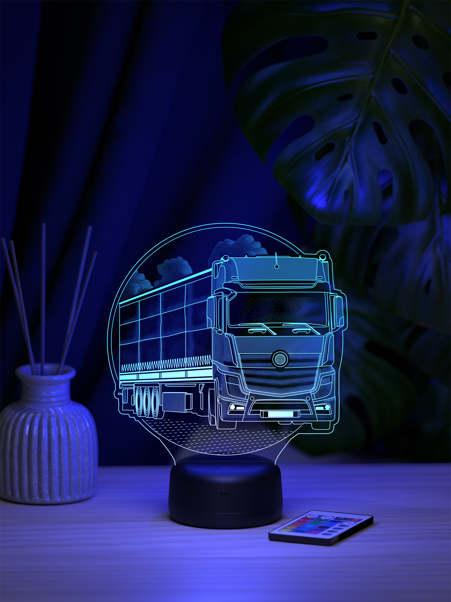 Ночник поддерживает 16 цветов свечения, регулировку яркости и удобное переключение режимов с помощью пульта дистанционного управления, позволяя легко подобрать освещение под настроение. Презентабельная упаковка подчёркивает статус ночника как готового подарка. Такой подарок подойдёт дальнобойщику, водителю грузового транспорта или человеку, для которого дорога и техника имеют особое значение, и будет уместен на день рождения, профессиональный праздник или как знак внимания в поддержку перед рейсом, добавляя в интерьер атмосферу пути и свободы.