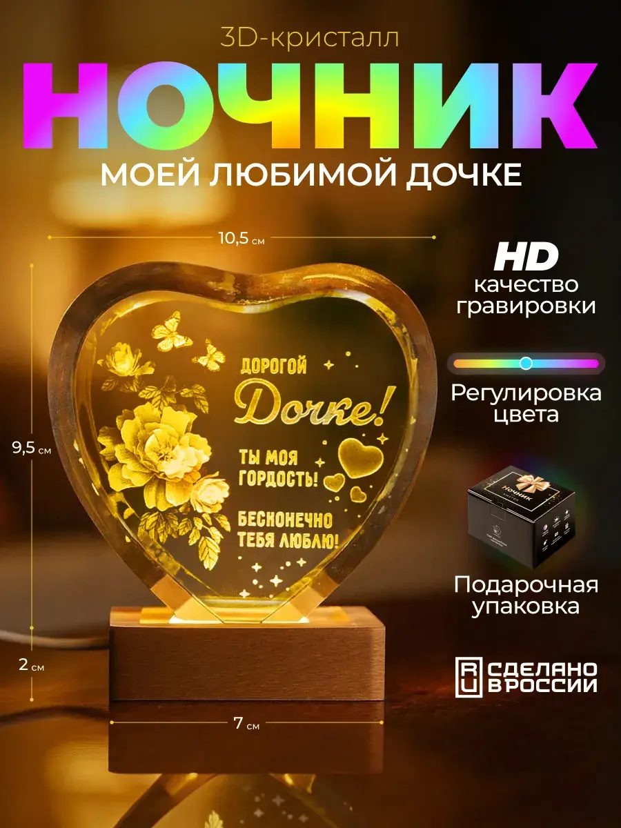 Такой подарок станет трогательным знаком внимания на день рождения, выпускной, 8 Марта или просто как способ сказать "Ты моя гордость" в любой обычный день. Ночник поставляется в презентабельной упаковке, поэтому вам не придётся беспокоиться о дополнительном оформлении. Это не просто предмет декора, а светлое напоминание о вашей любви, которое будет согревать её каждый вечер.