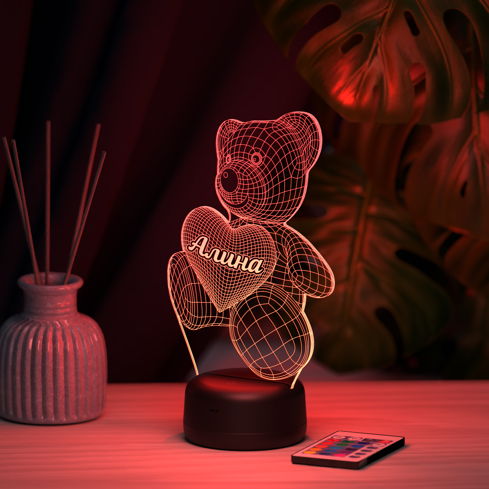 В светильнике 16 цветов свечения и режим плавной смены цвета. Цвета переключаются сенсорной кнопкой. Сенсорный выключатель находится в верхней части подставки. Радиус освещения в пределах 2-х метров. Материал: -органическое стекло -база из ABS пластика