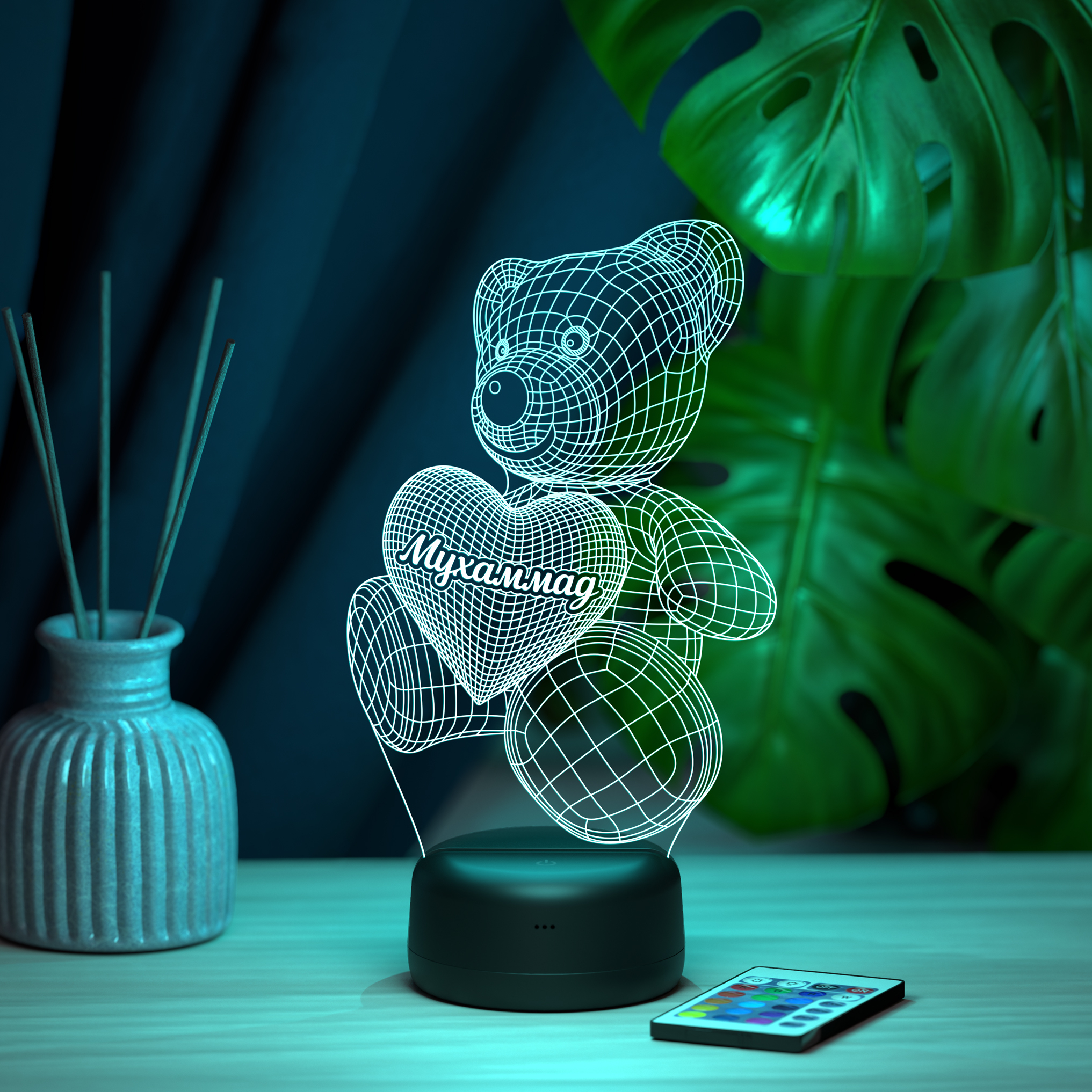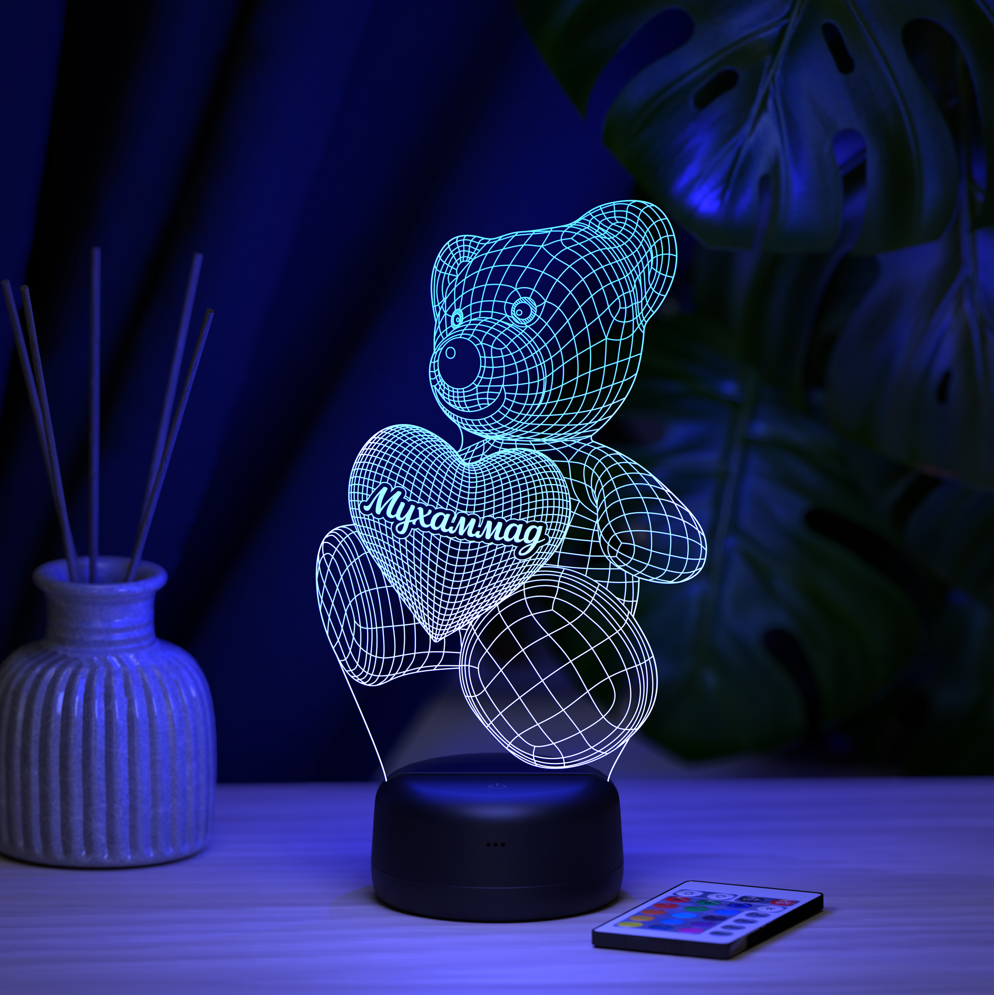 В светильнике 16 цветов свечения и режим плавной смены цвета. Цвета переключаются сенсорной кнопкой. Сенсорный выключатель находится в верхней части подставки. Радиус освещения в пределах 2-х метров. Материал: -органическое стекло -база из ABS пластика