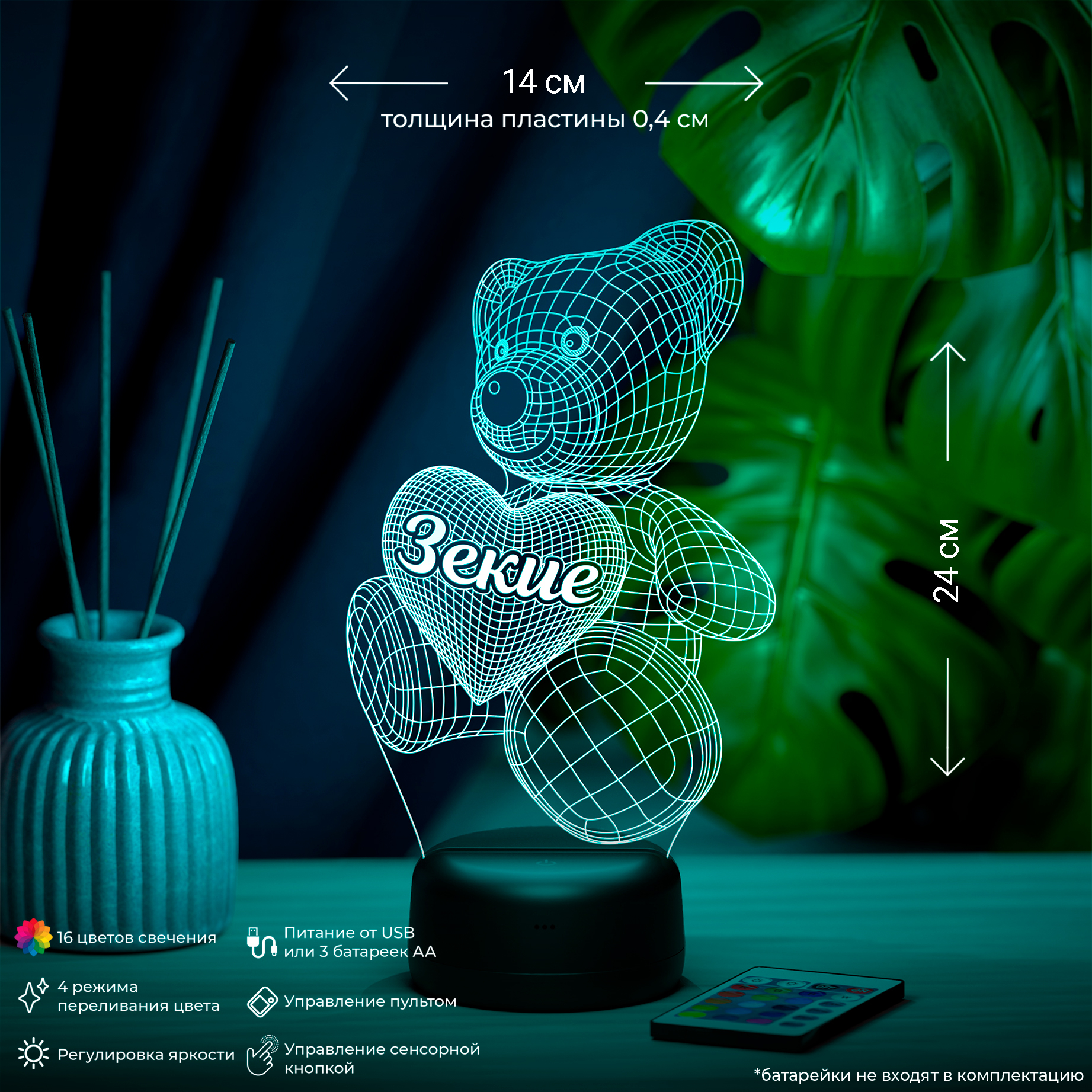 В светильнике 16 цветов свечения и режим плавной смены цвета. Цвета переключаются сенсорной кнопкой. Сенсорный выключатель находится в верхней части подставки. Радиус освещения в пределах 2-х метров. Материал: -органическое стекло -база из ABS пластика