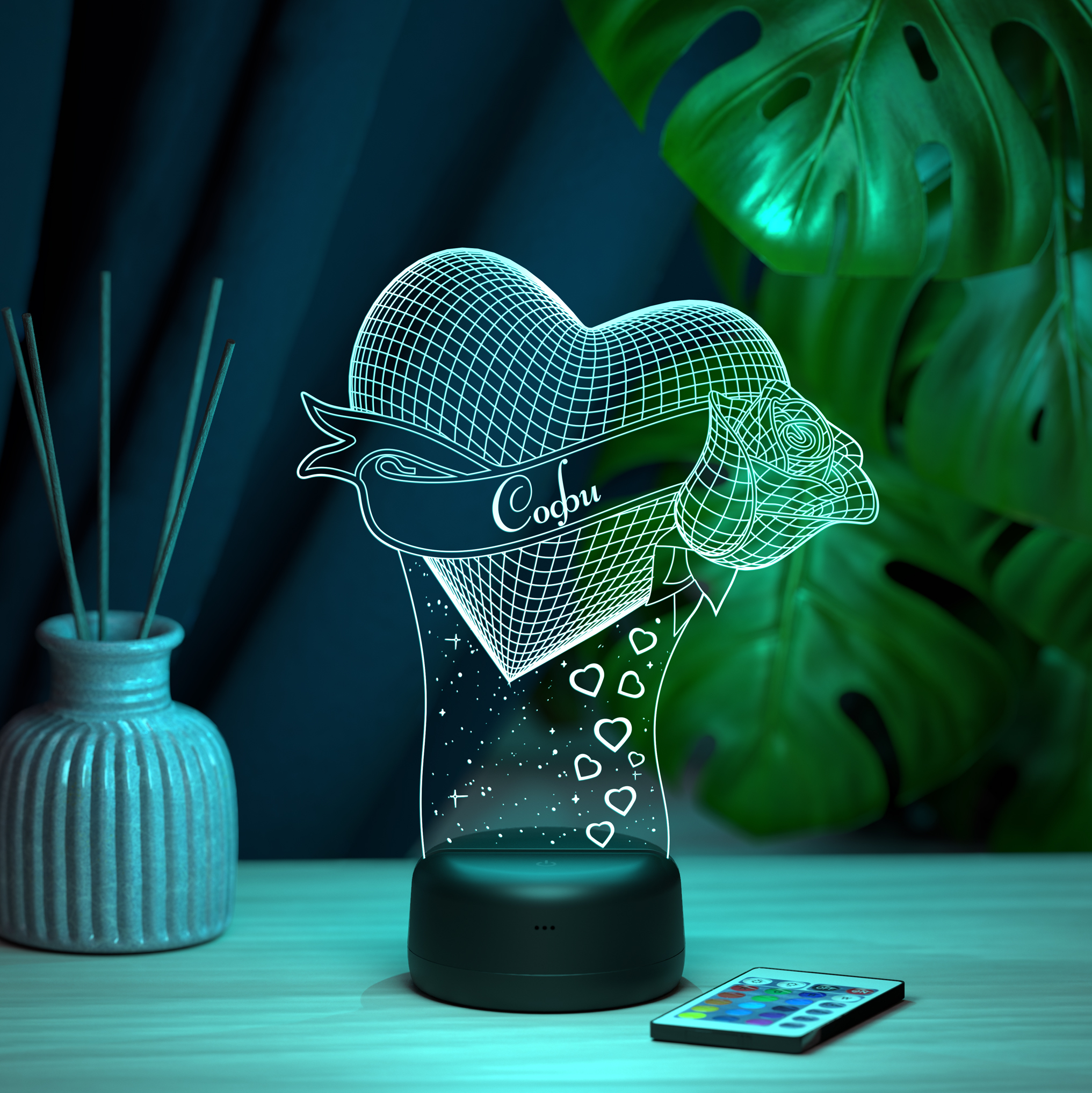 В светильнике 16 цветов свечения и режим плавной смены цвета. Цвета переключаются сенсорной кнопкой. Сенсорный выключатель находится в верхней части подставки. Радиус освещения в пределах 2-х метров. Материал: -органическое стекло -база из ABS пластика