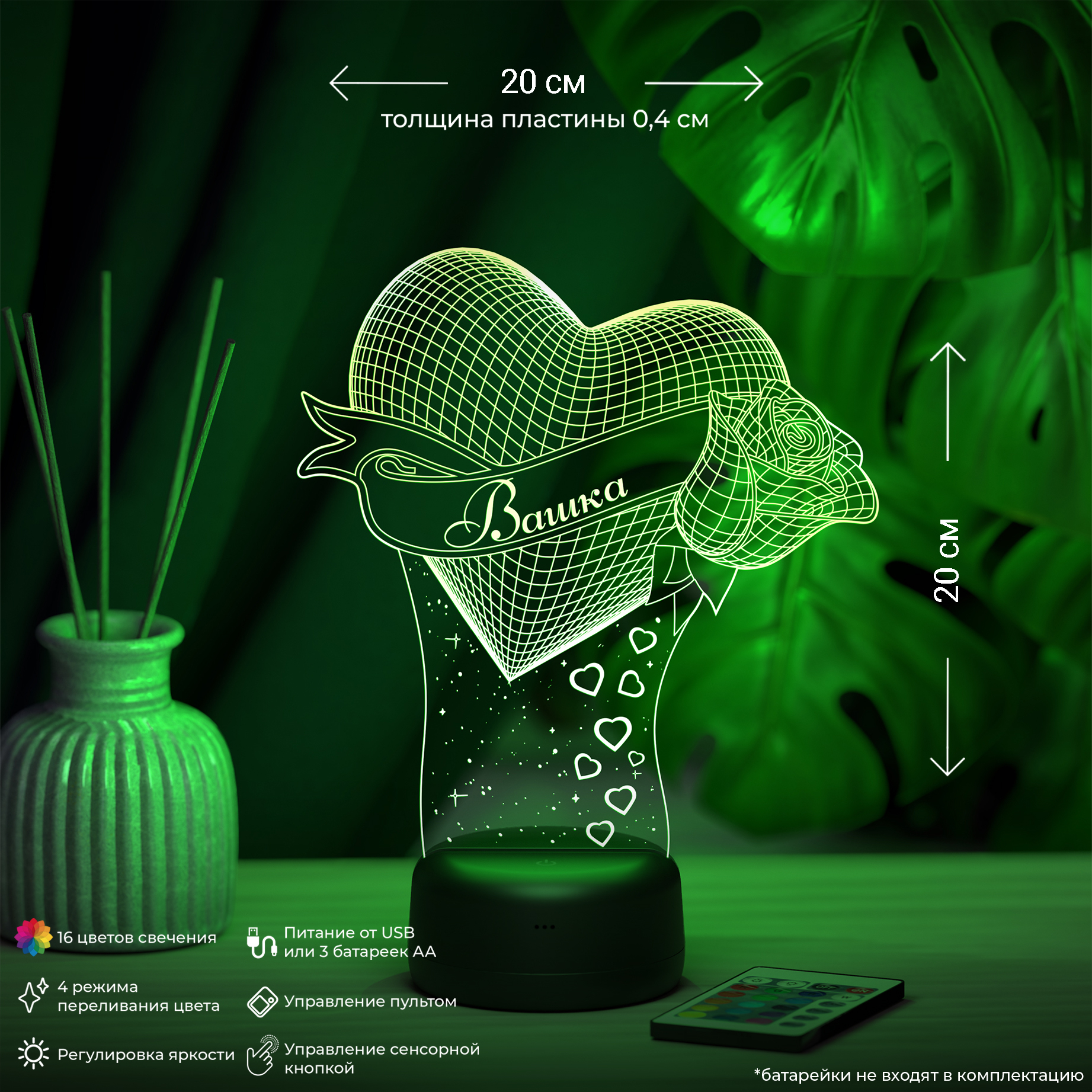 В светильнике 16 цветов свечения и режим плавной смены цвета. Цвета переключаются сенсорной кнопкой. Сенсорный выключатель находится в верхней части подставки. Радиус освещения в пределах 2-х метров. Материал: -органическое стекло -база из ABS пластика