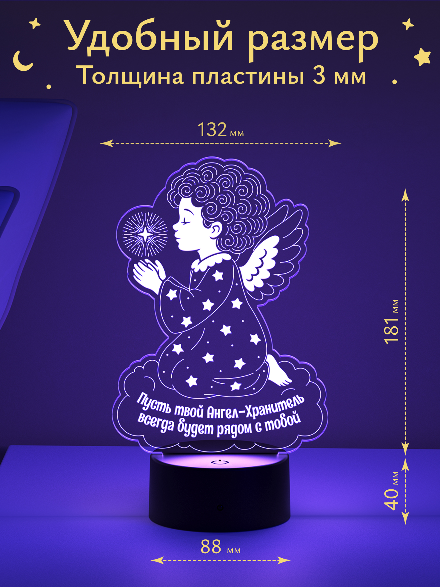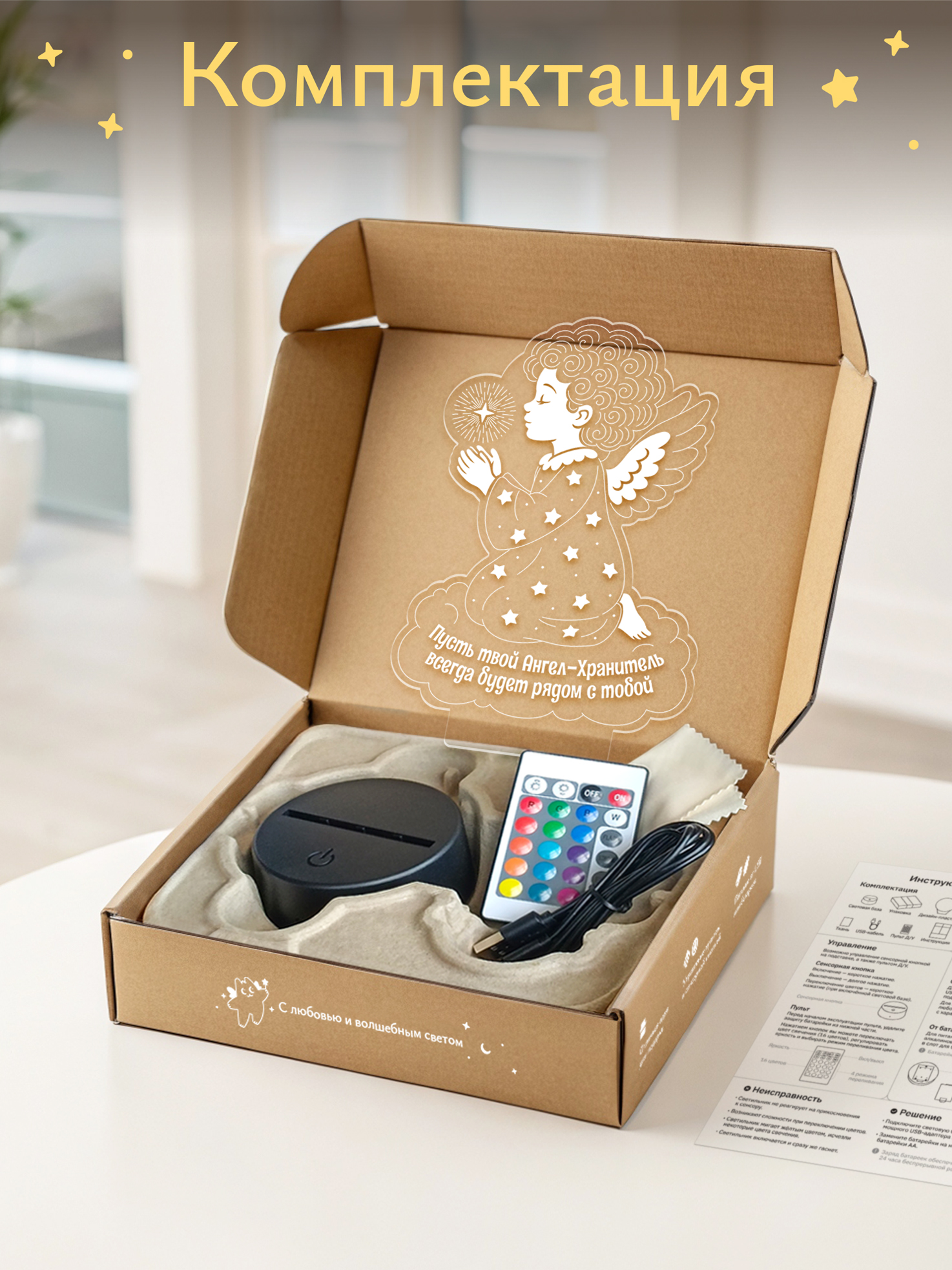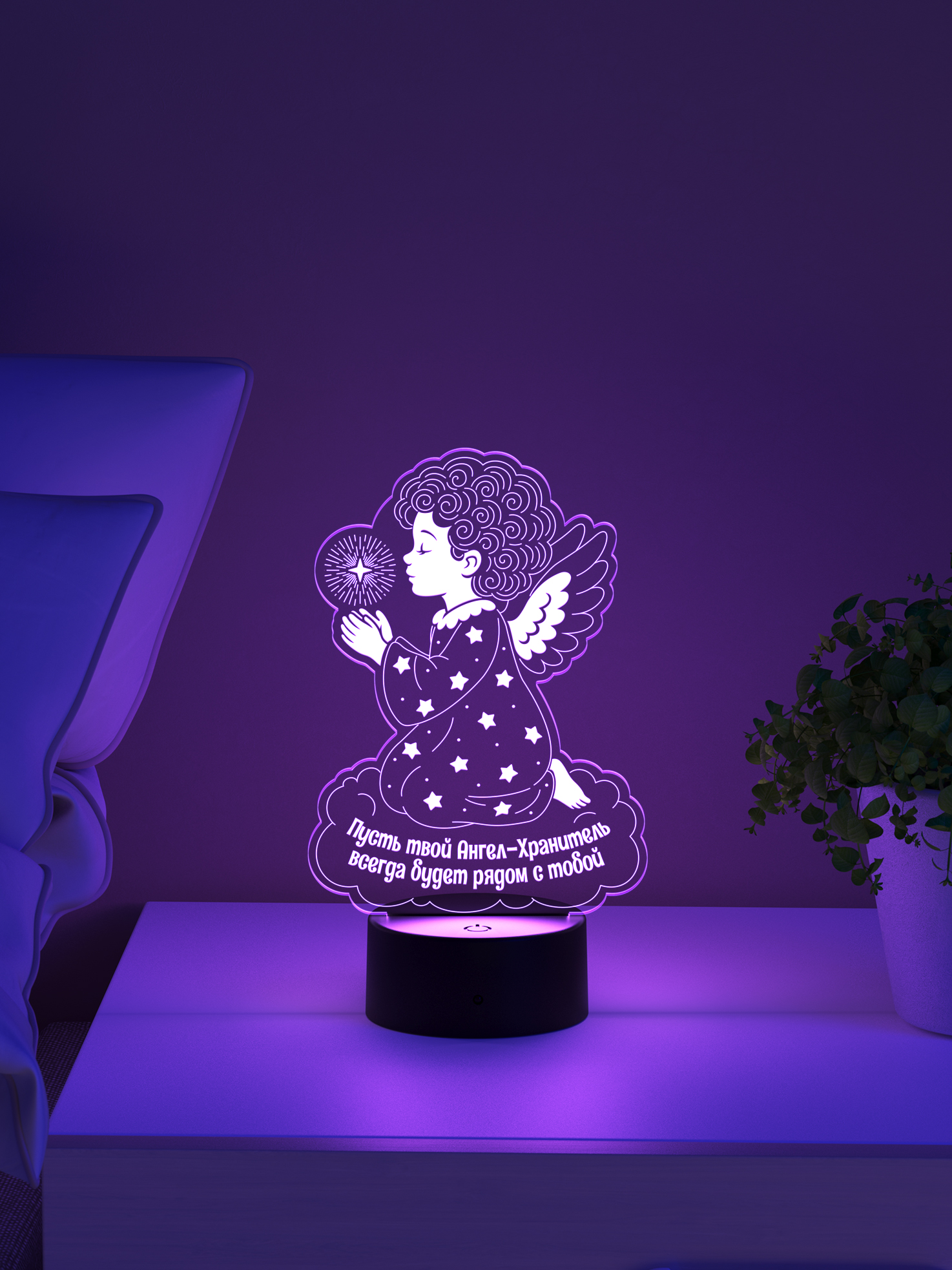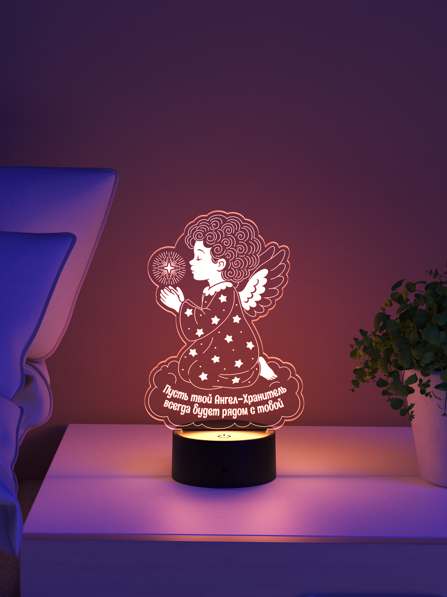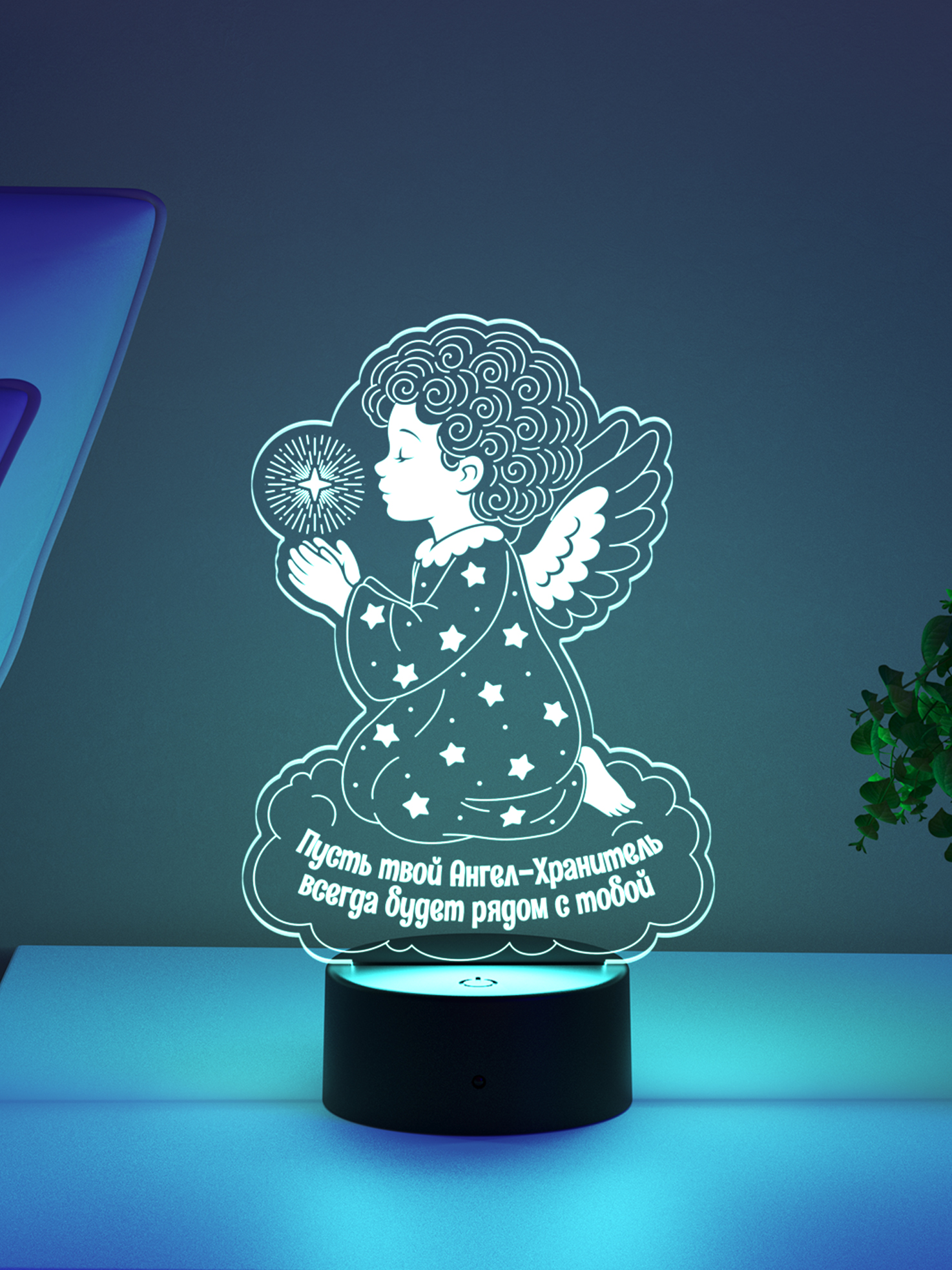 Ночник Ангел с пожеланием - это символ света, добра и заботы, который наполняет интерьер спокойствием и гармонией. Мягкое свечение создаёт атмосферу уюта и умиротворения, а изящный образ ангела с тёплыми словами пожелания становится душевным акцентом в любом пространстве. Такой ночник красиво смотрится в спальне, гостиной или в комнате, где хочется сохранить ощущение тепла и покоя.