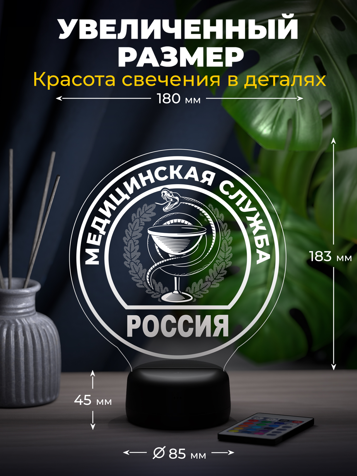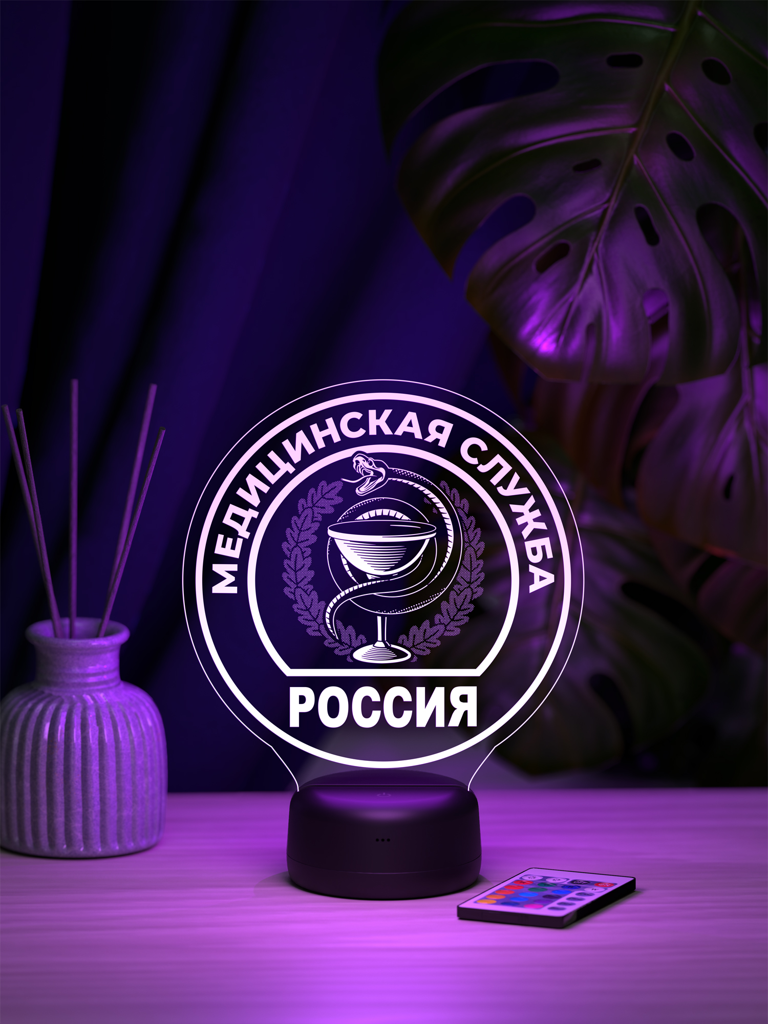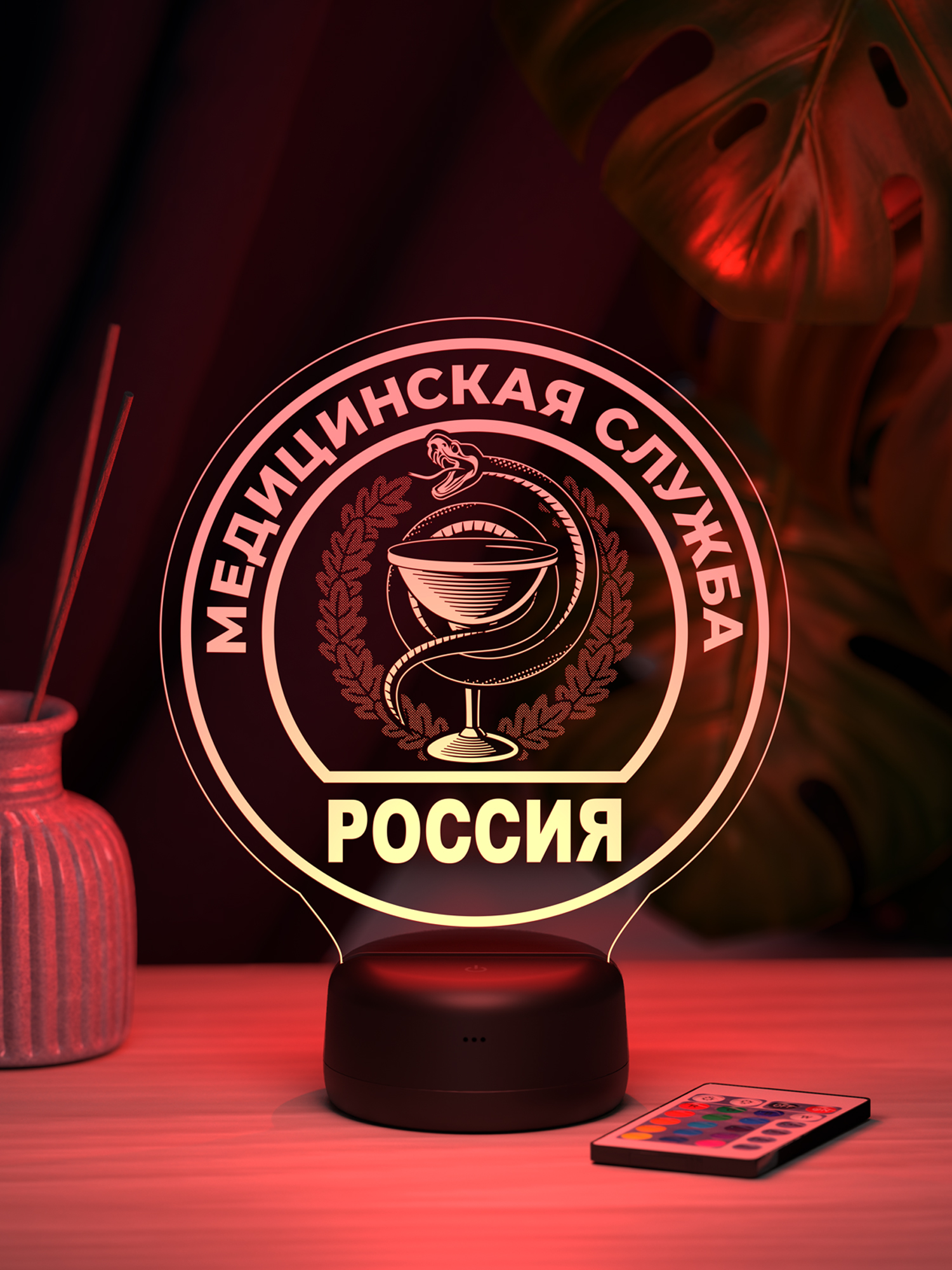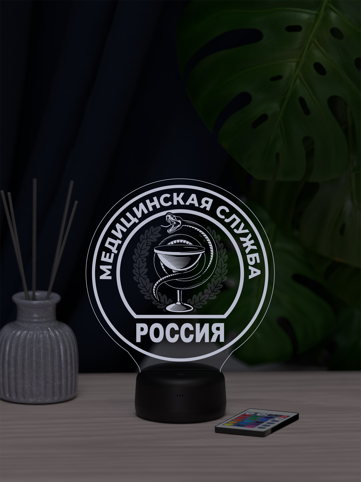 Ночник Медслужба выполнен в виде шеврона и отражает силу, ответственность и преданность профессии. Чёткий символичный образ подчёркивается мягким свечением, которое создаёт спокойную и уверенную атмосферу, гармонично дополняя интерьер и наполняя пространство ощущением надёжности и порядка. Такой акцент смотрится выразительно и подчёркивает уважение к службе и людям, посвятившим себя помощи другим.