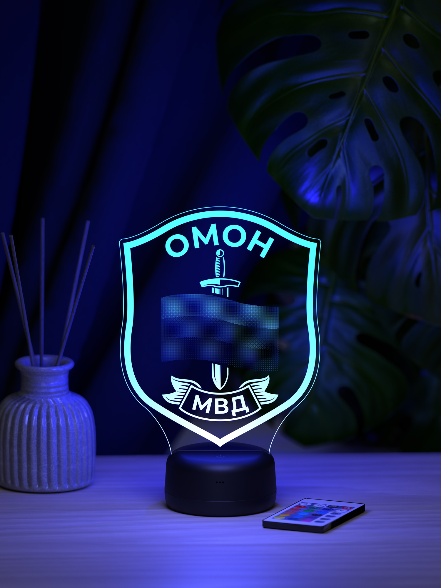 Ночник предлагает 16 цветов свечения, удобную регулировку яркости и переключение режимов с помощью пульта дистанционного управления, позволяя легко менять настроение освещения под обстановку. Презентабельная упаковка сразу подчёркивает, что перед вами готовый подарок. Такой подарок подойдёт сотруднику ОМОН, ветерану подразделения или человеку, связанному с силовыми структурами, и будет уместен на профессиональный праздник, день рождения, юбилей или памятную дату, добавляя в интерьер символ мужества, ответственности и служебной чести.