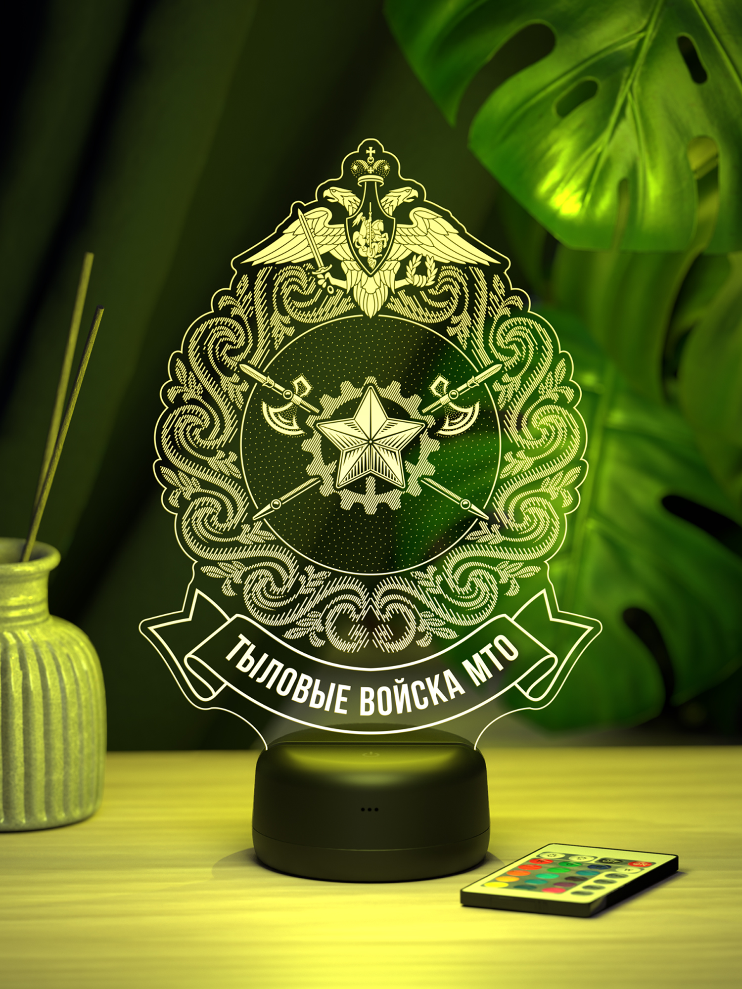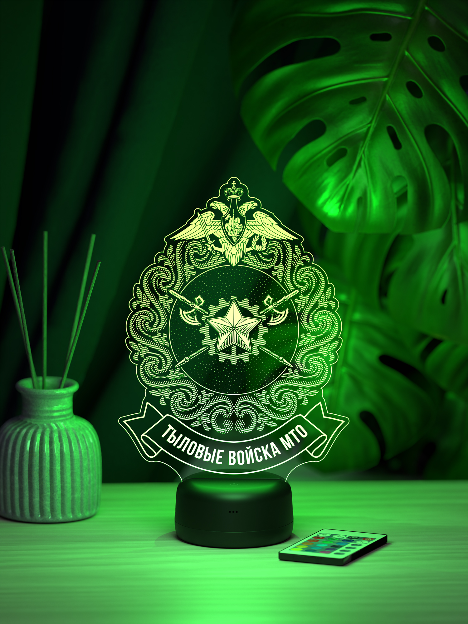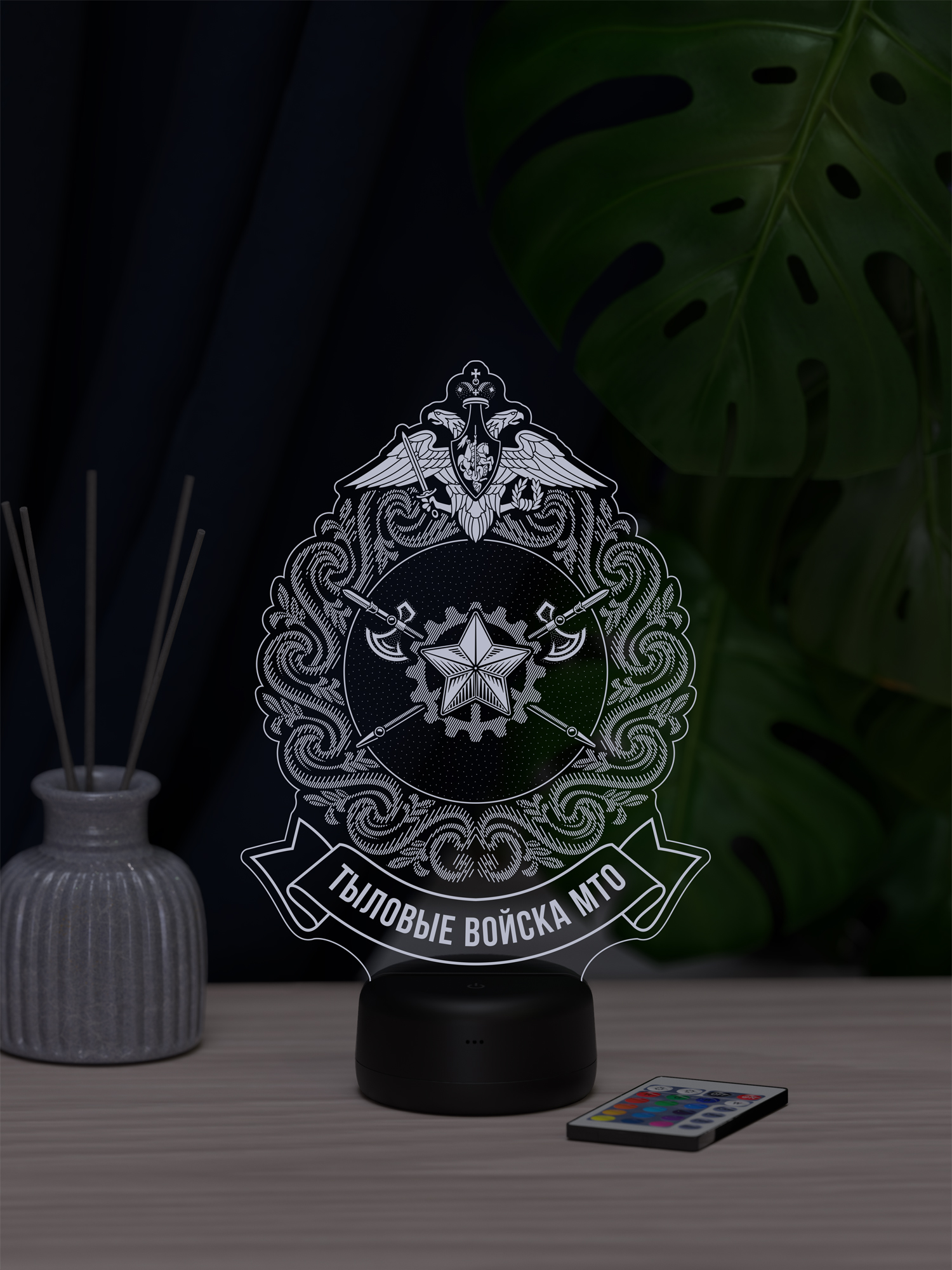 Ночник «Тыловые войска МТО» — это знак уважения к тем, кто остаётся в тени, но обеспечивает надёжный фундамент любой операции. Эмблема тыловых войск в мягком свете выглядит выразительно и достойно, подчёркивая значимость службы и вклад в общее дело. Такой ночник гармонично вписывается в интерьер кабинета или дома, создавая атмосферу уверенности, порядка и внутренней силы.
