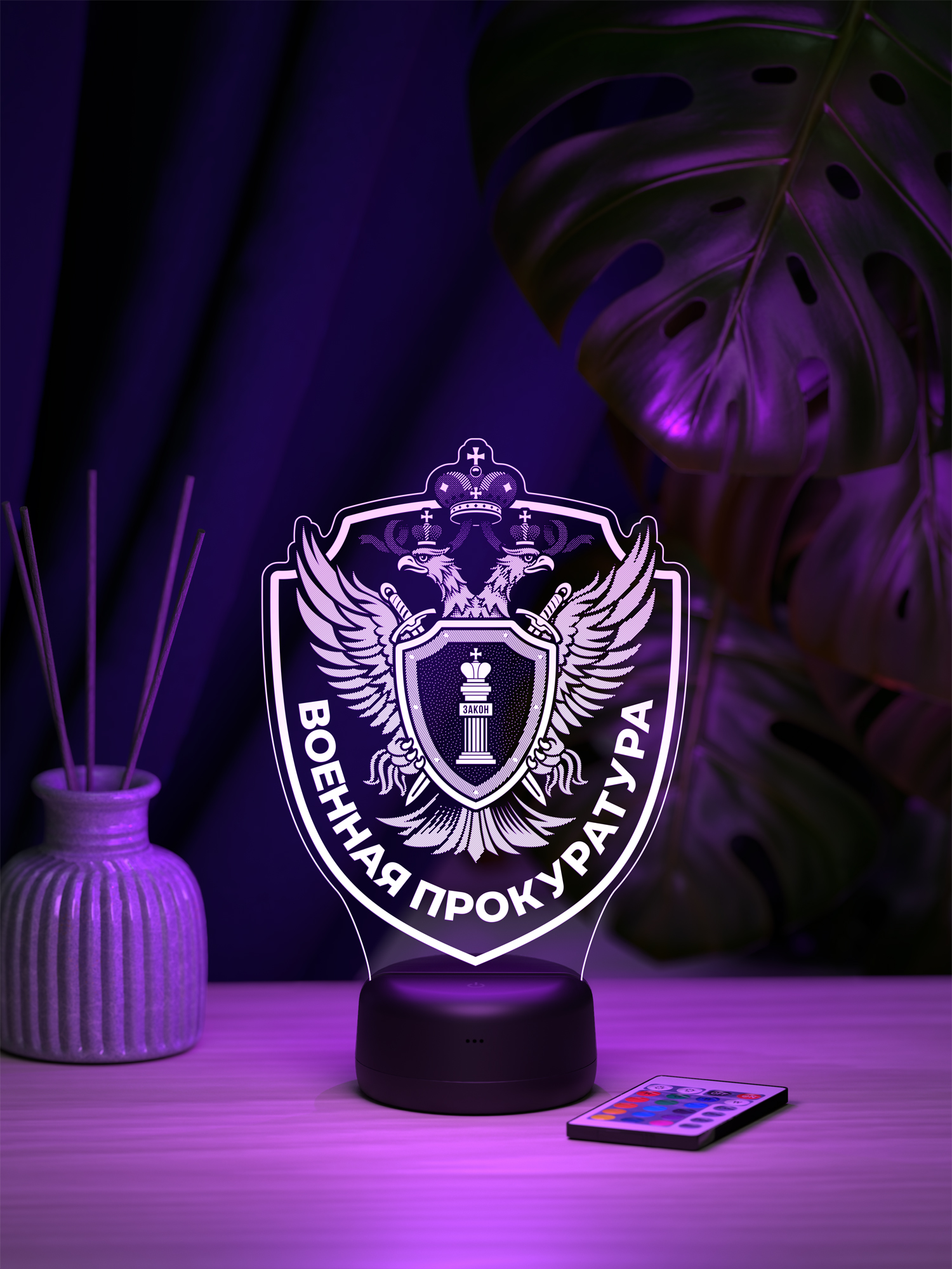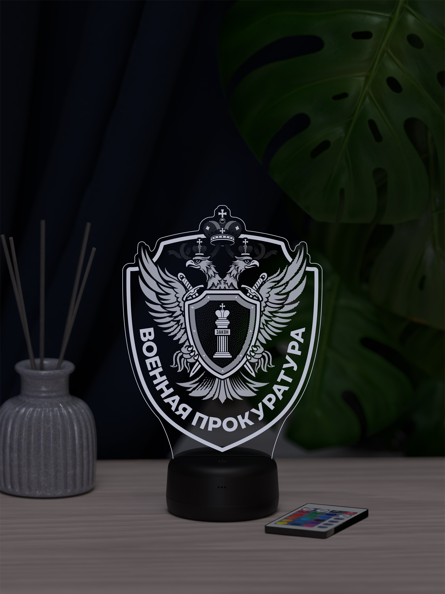 Ночник «Военная прокуратура РФ» - это выразительный символ чести, закона и верности служебному долгу. Эмблема ведомства в мягком свете выглядит солидно и статусно, подчёркивая значимость профессии и внутреннюю силу её представителя. Такой ночник гармонично дополняет интерьер кабинета или дома, создавая атмосферу уверенности, порядка и спокойствия.